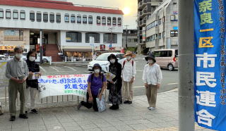 奈良1区市民連合は第8回「市民と野党共闘を求めるタウントーク」を行いました。16時から17時まで西大寺北口駅前でトークを,改札口前のコンコースでスタンディングとチラシ配布を行いました。