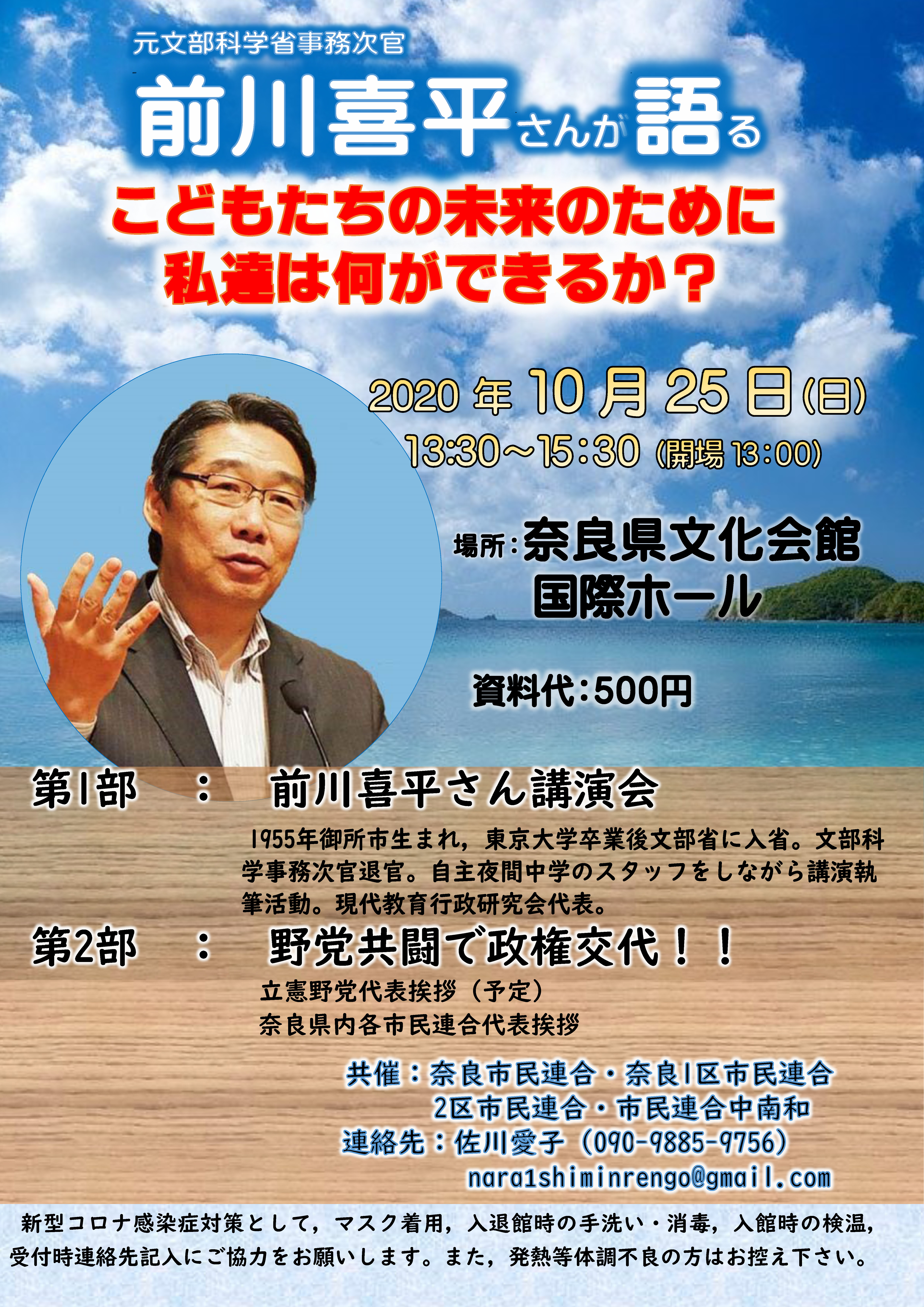 2020年10月25日(日) 前川喜平講演会 奈良1区市民連合