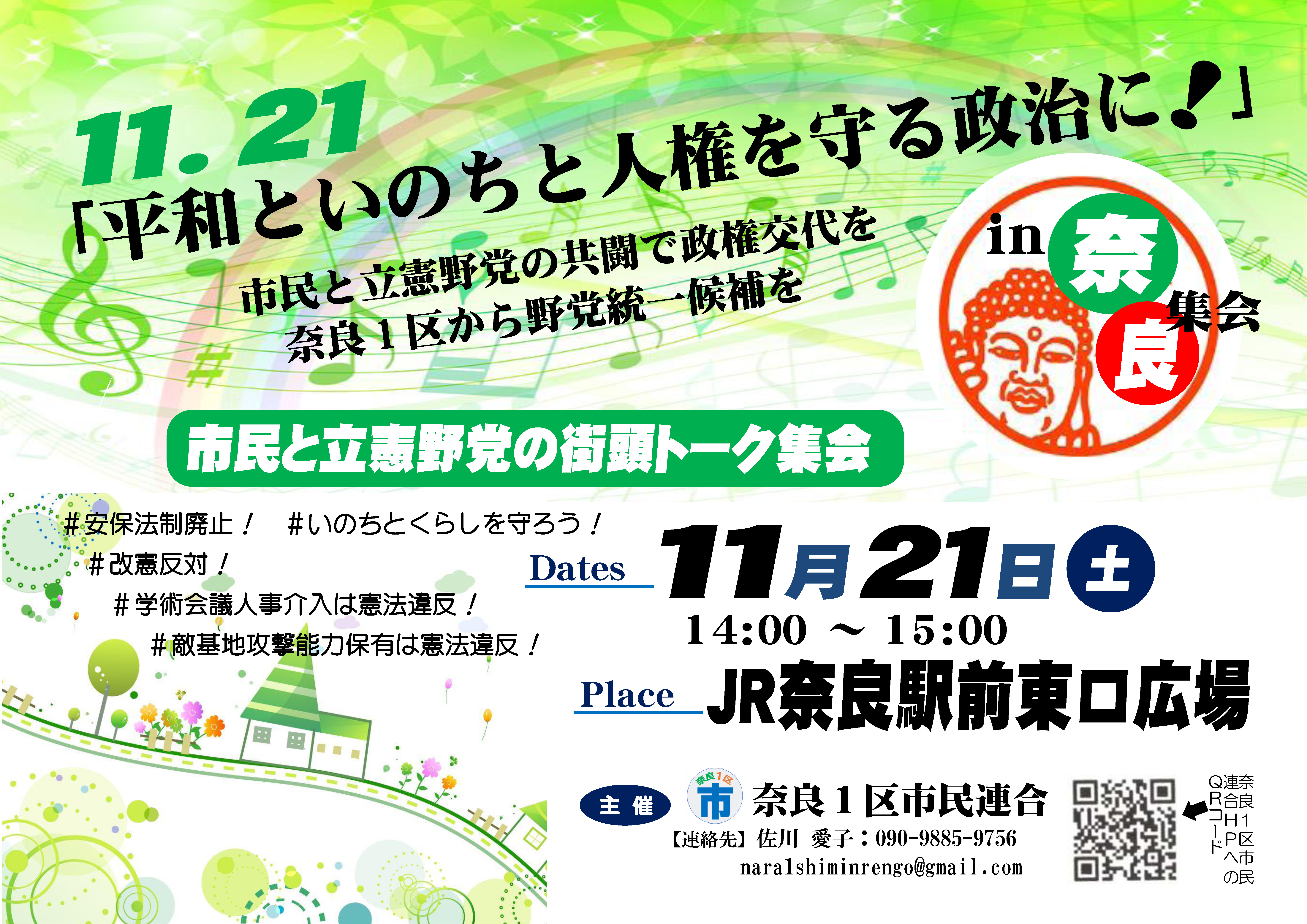 2020年11月21日(土)市民と立憲野党の街頭トーク集会 奈良1区市民連合