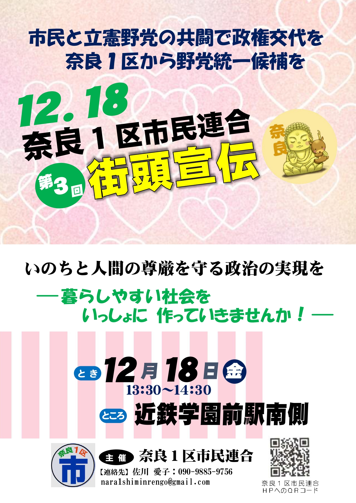 2020年12月18日(金)奈良1区市民連合 第3回街頭宣伝